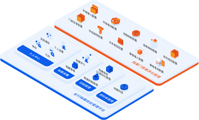 通过灵活的门类配置,实现了全门类档案管理功能差异化、档案管理过程差异化、档案业务元数据差异化。